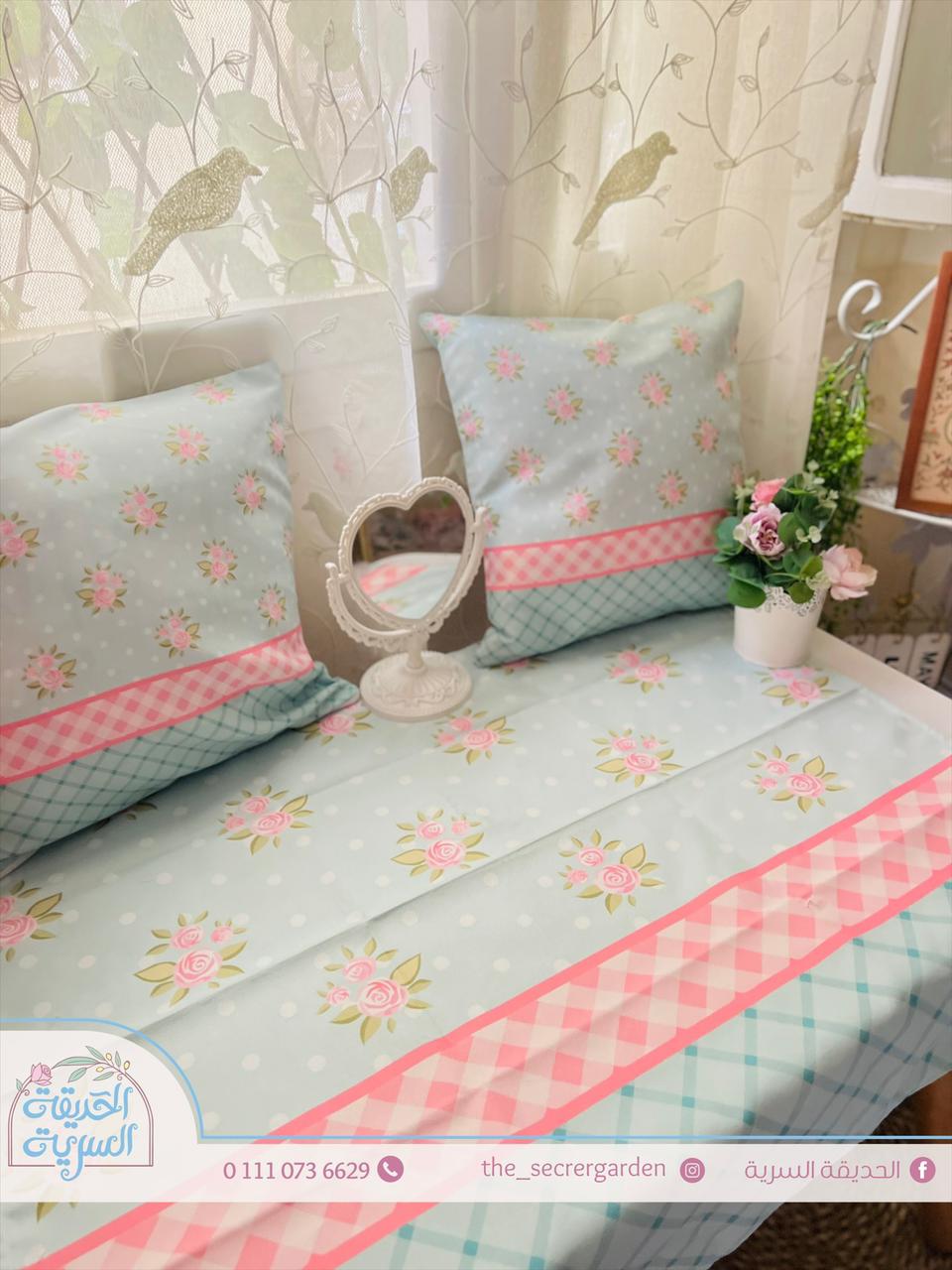 الطقم مكون من مفرش و 2 غطاء مخدة “غير محشية”