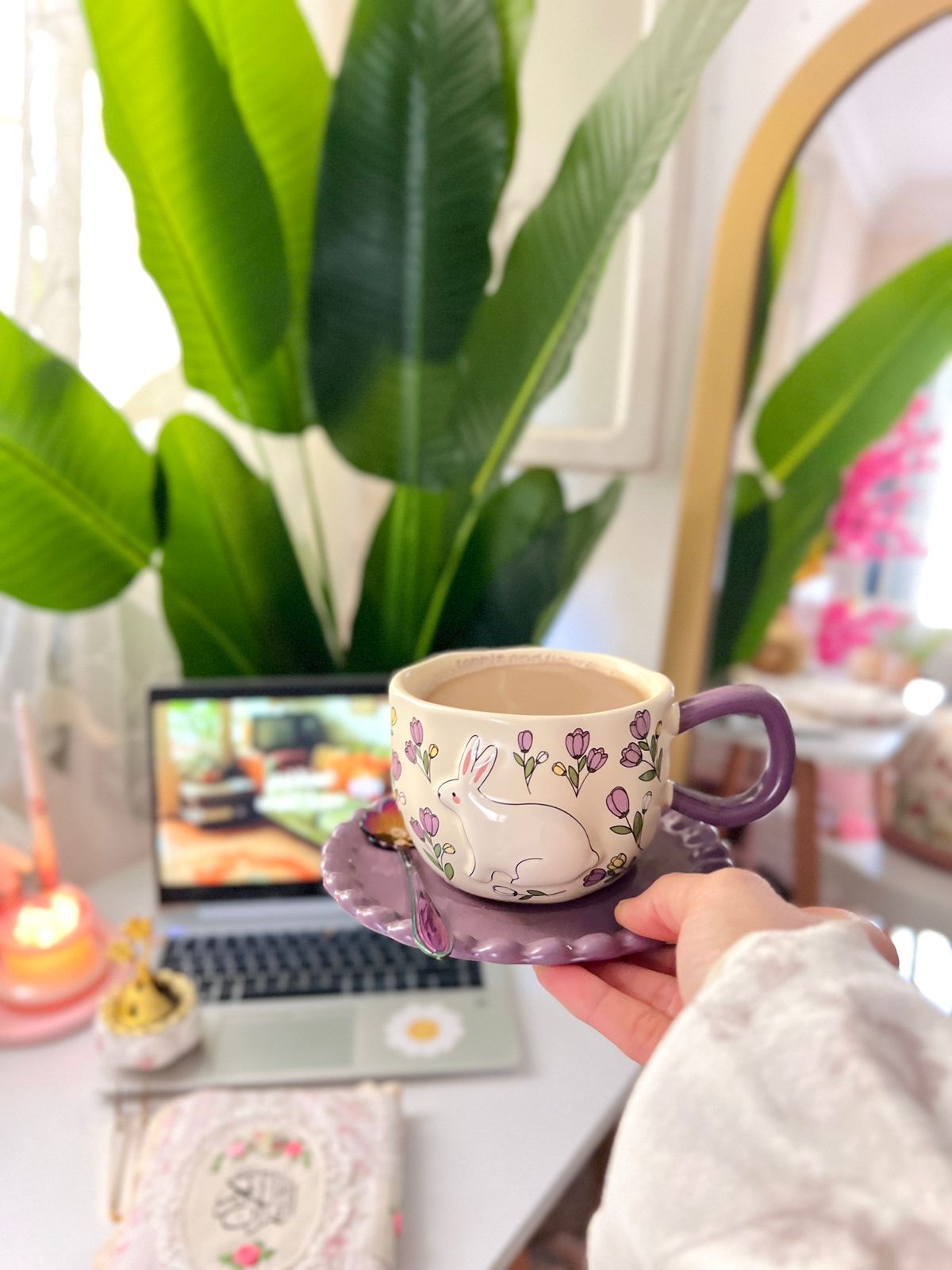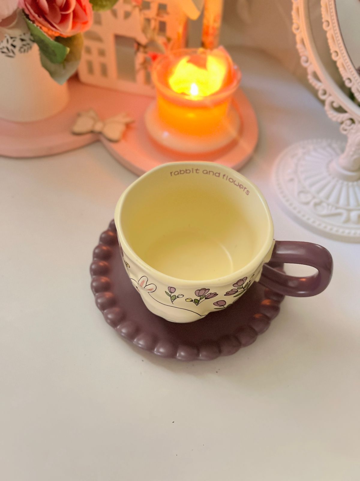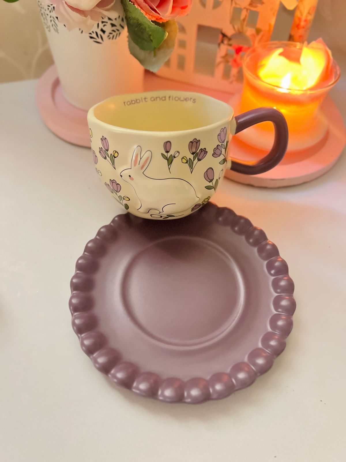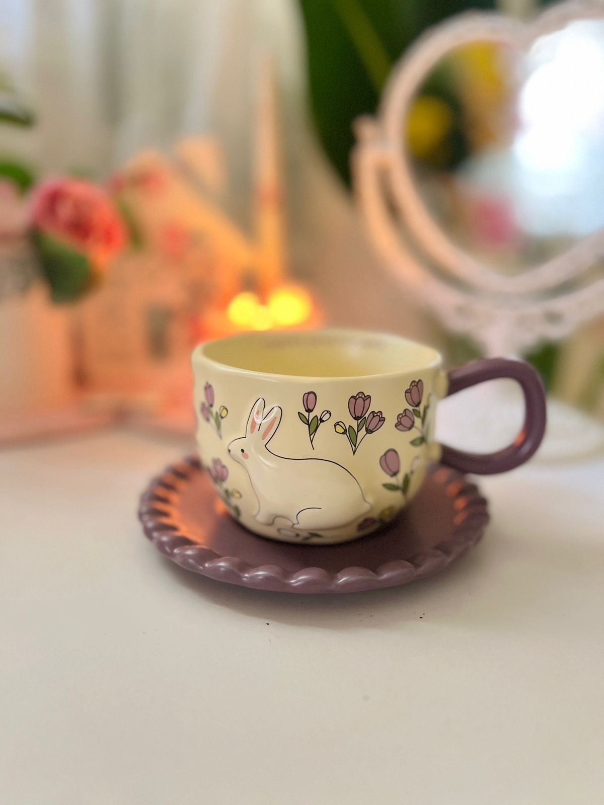 Be the first to review “فنجان شاي السيد أرنوب بنفسجي بطبق”