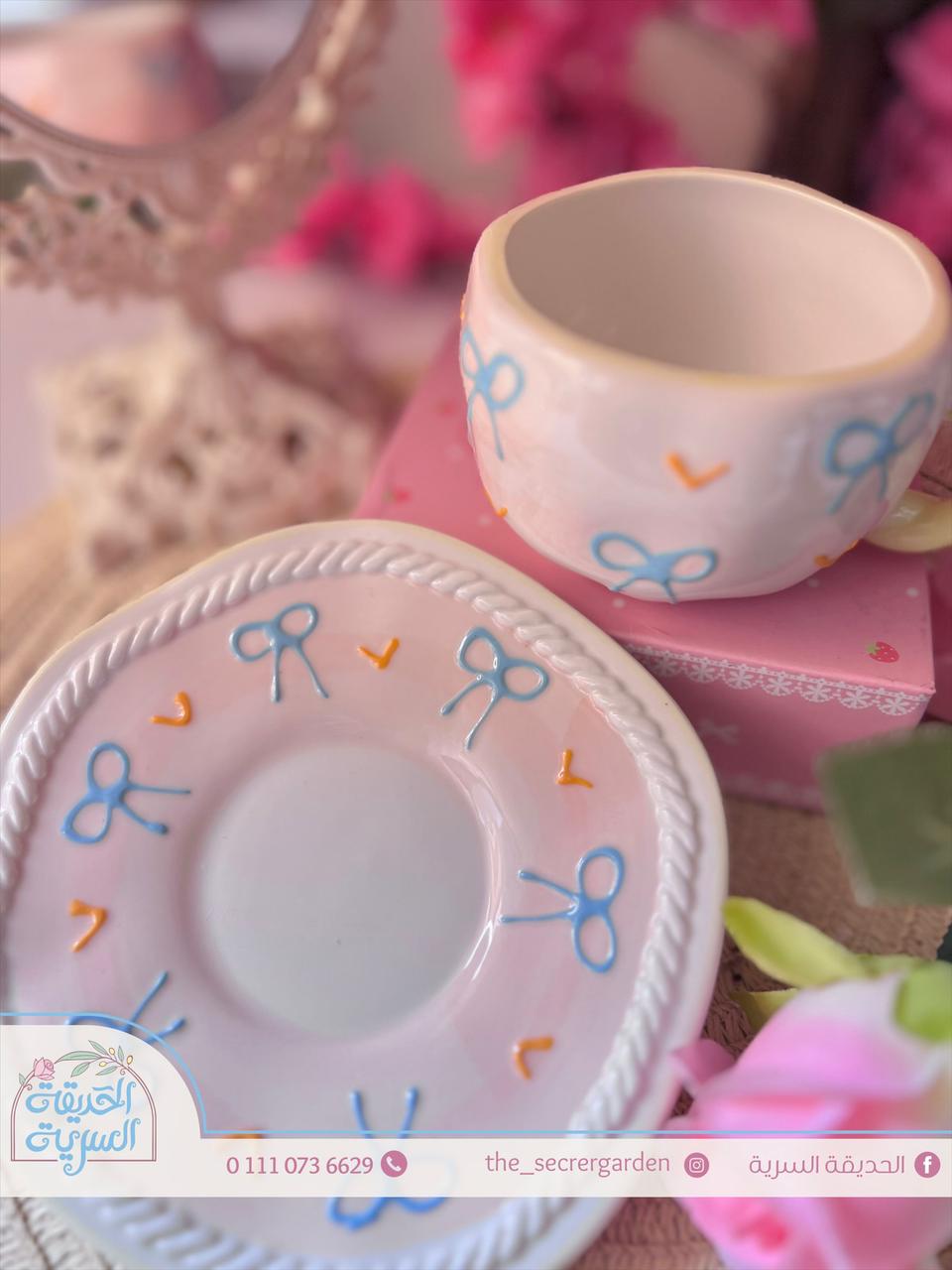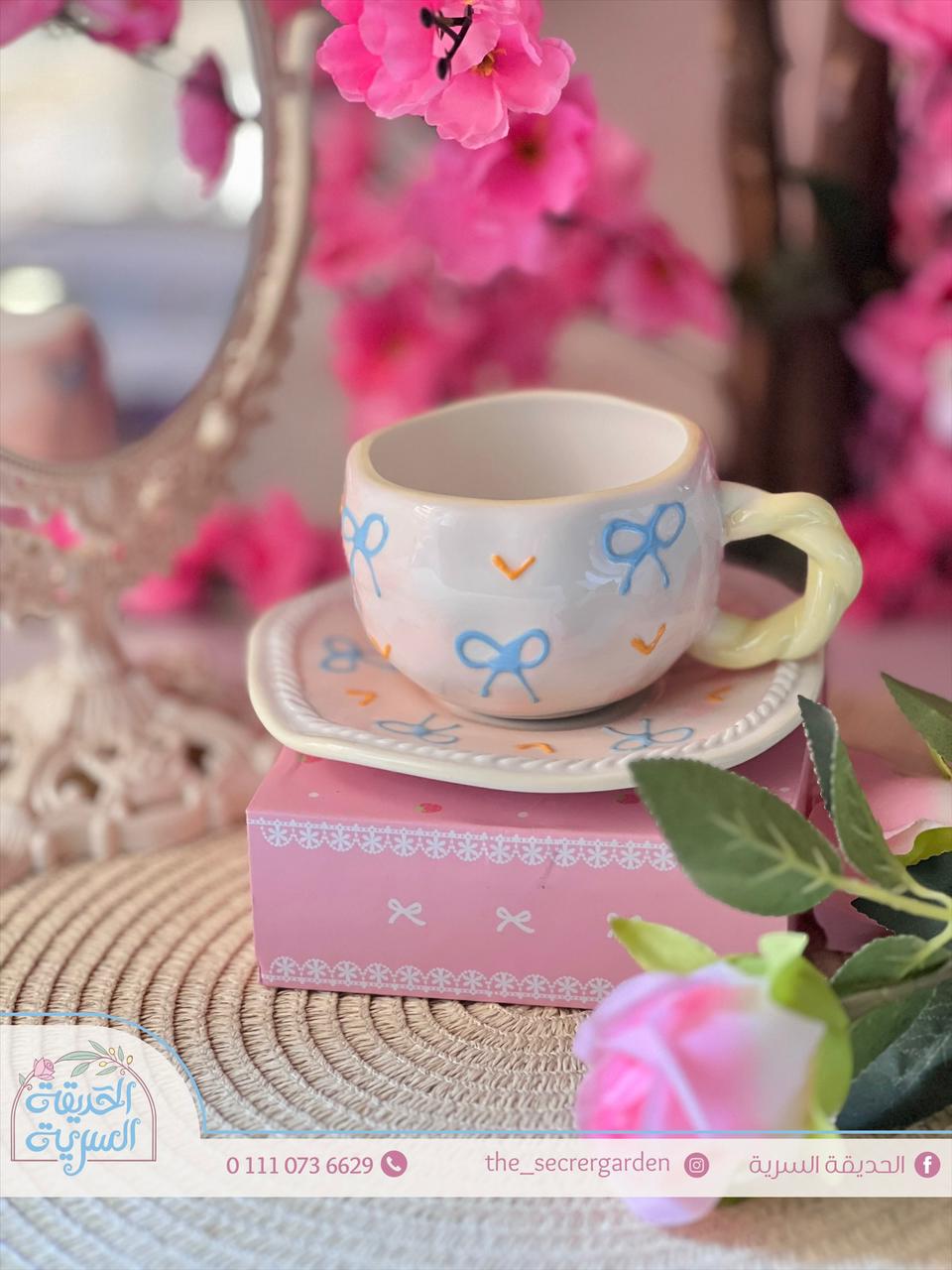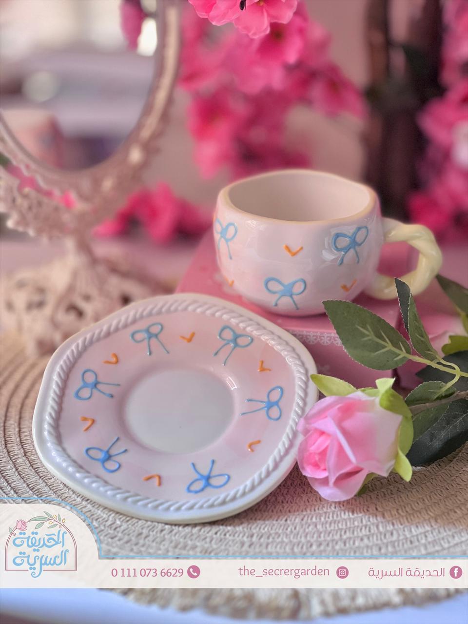 طقم فخم وأنيق براد و 2 فنجان قهوة أرنب وورد