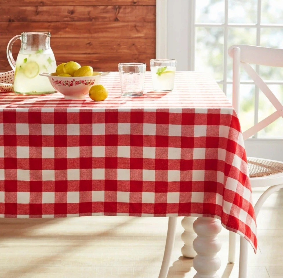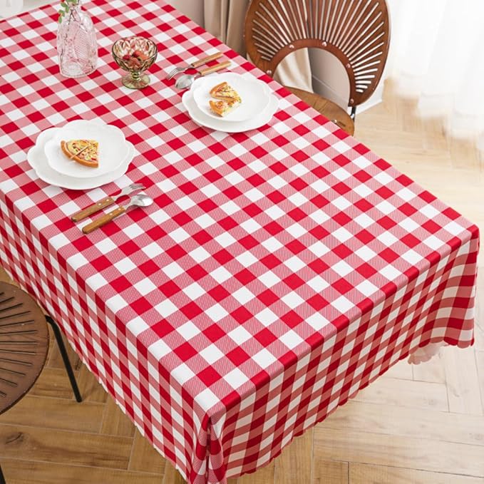 قماش كاروهات عريضة أحمر قطن