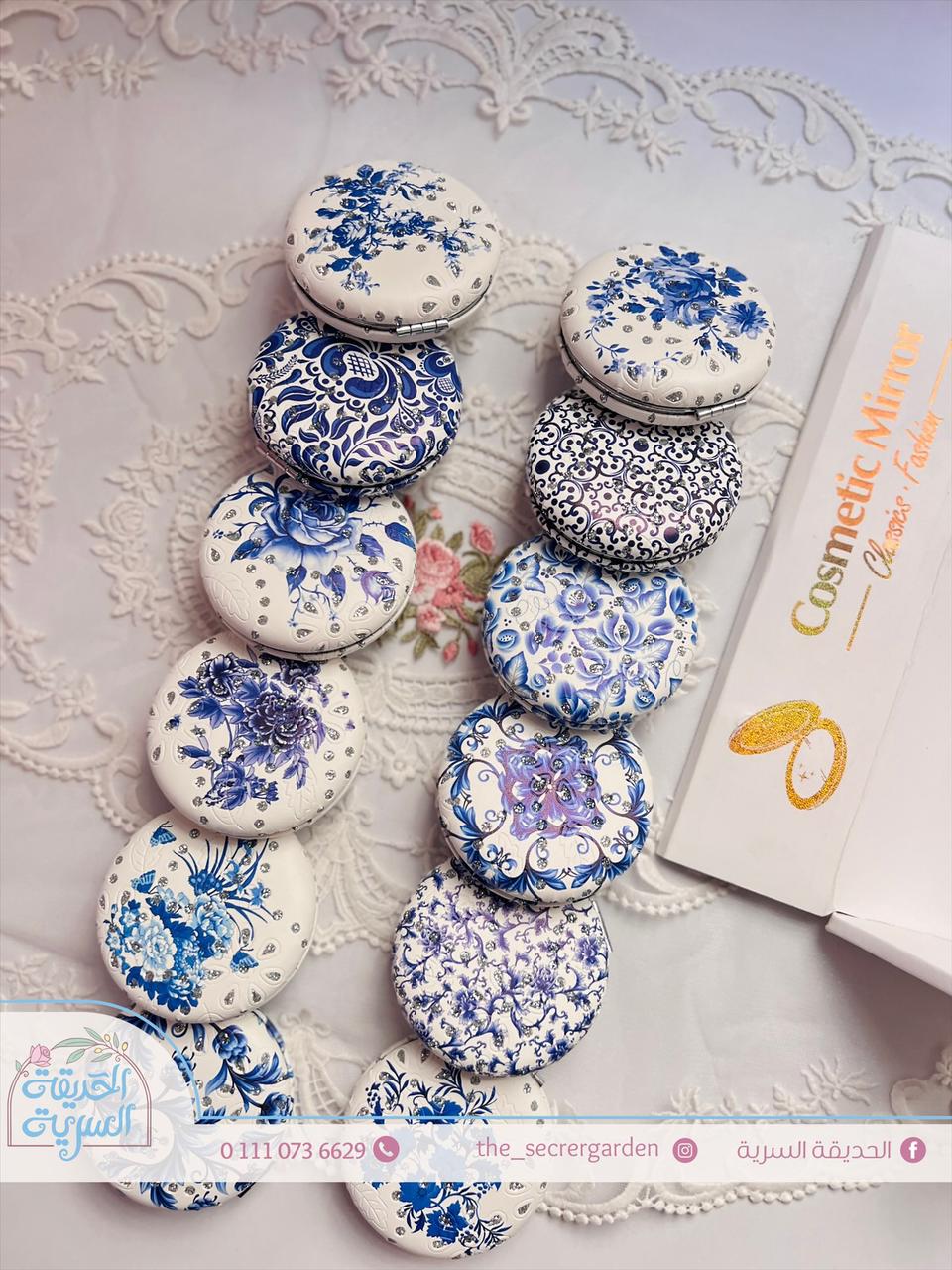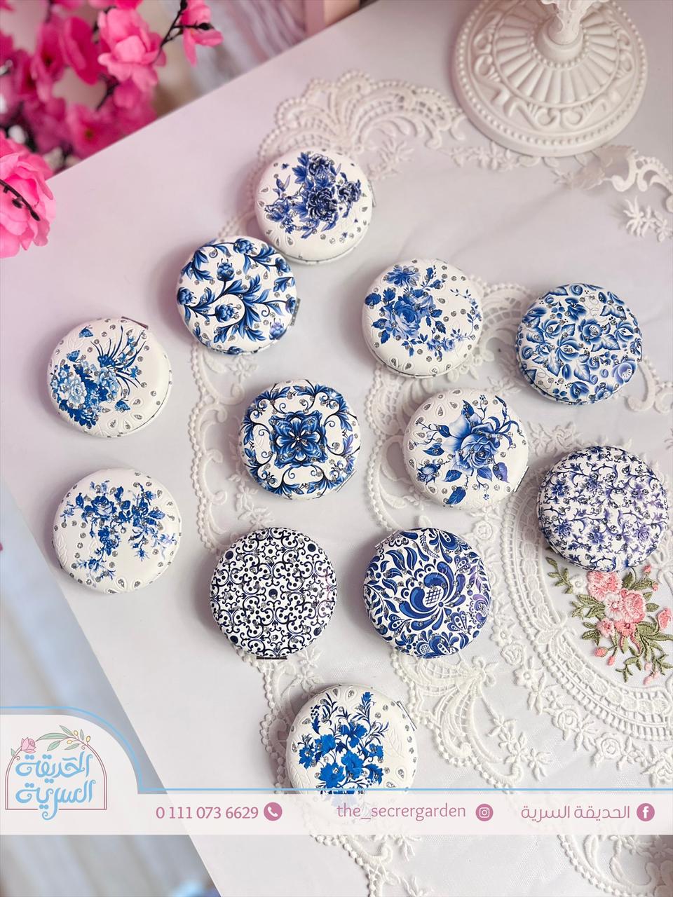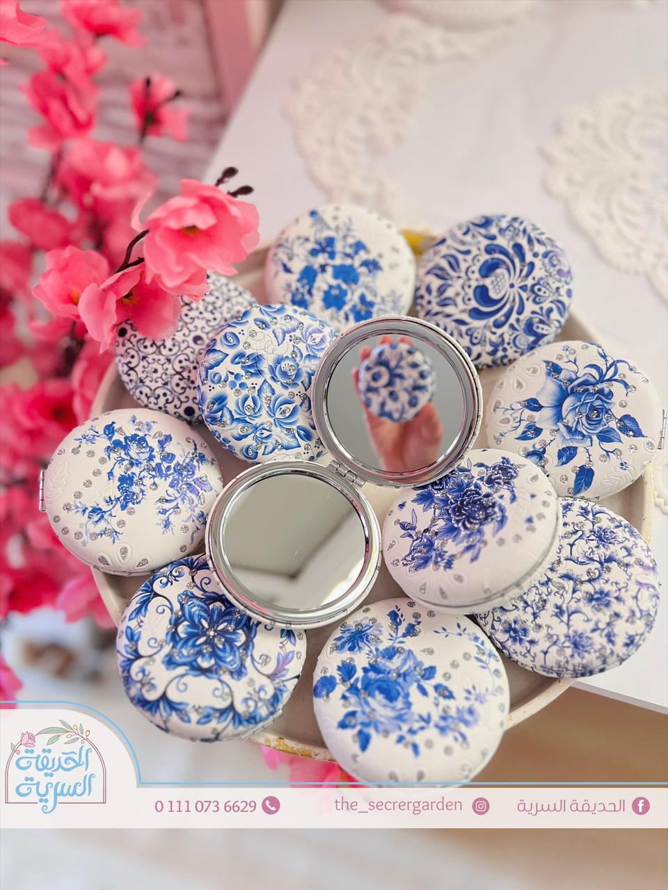 مراية أنيقة زهور وزخرفة زرقاء