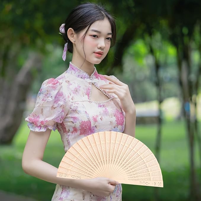 مروحة يدوية بطراز كلاسيكي: المروحة اليدوية مصنوعة من خشب عالي الجودة. تتميز بطراز عتيق، أنيق وجميل. تم نقش عناصر من الطراز الكلاسيكي الصيني على المروحة. عظام المروحة مجوفة ومثبتة بمسامير المروحة..
