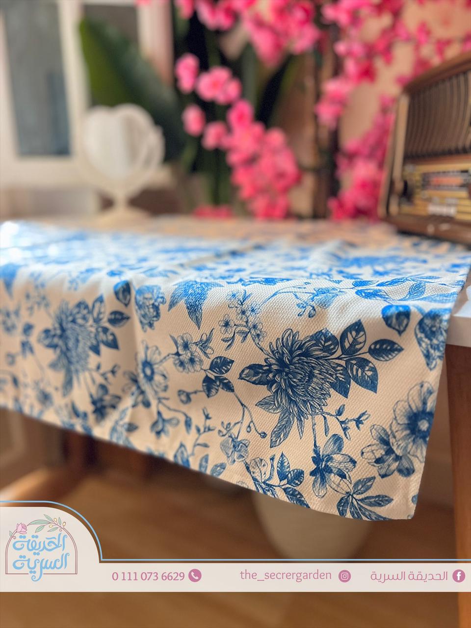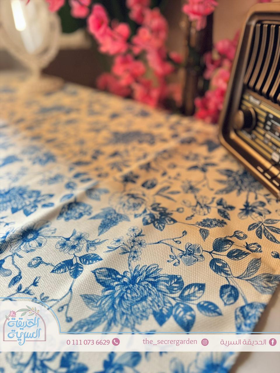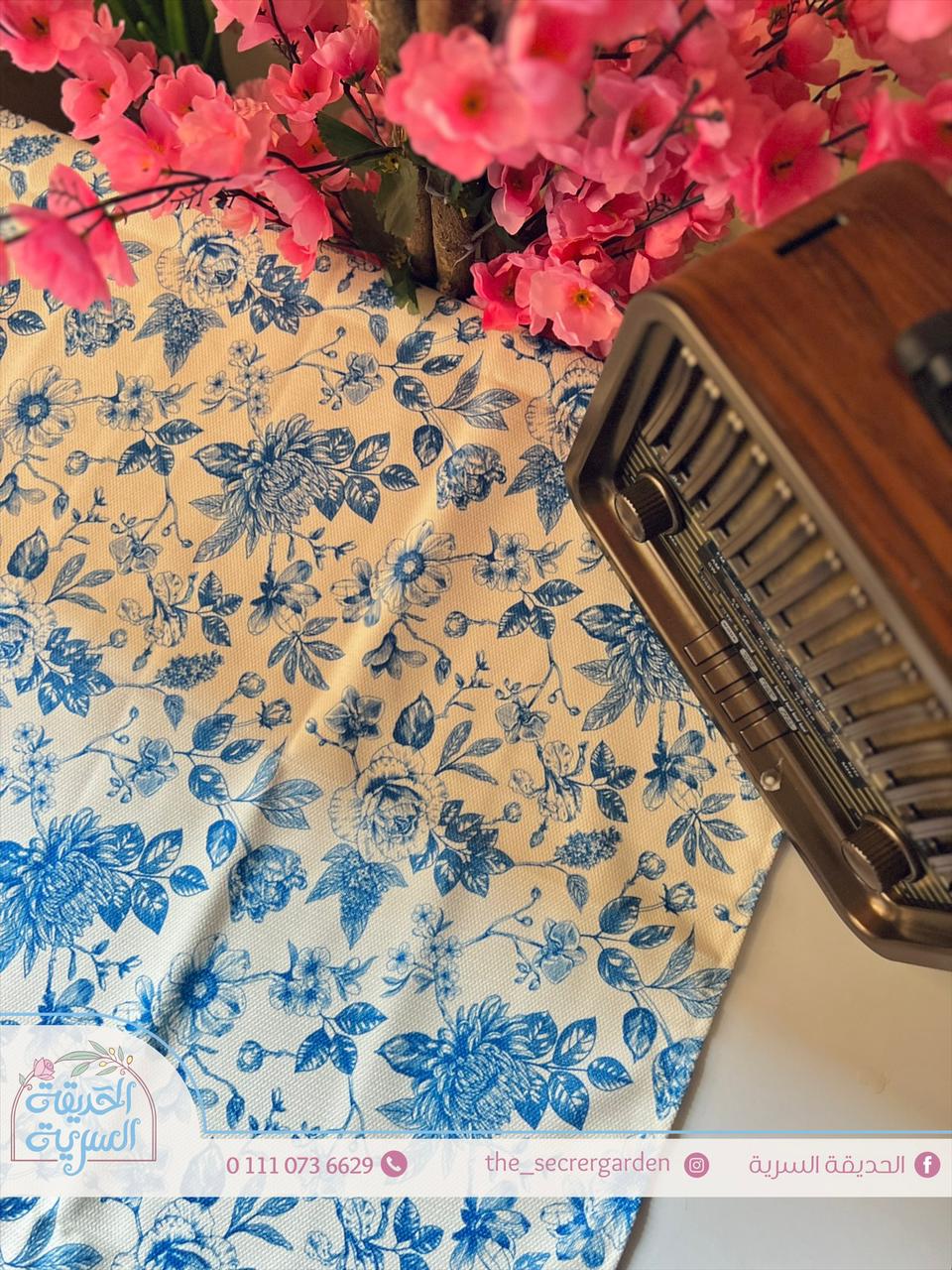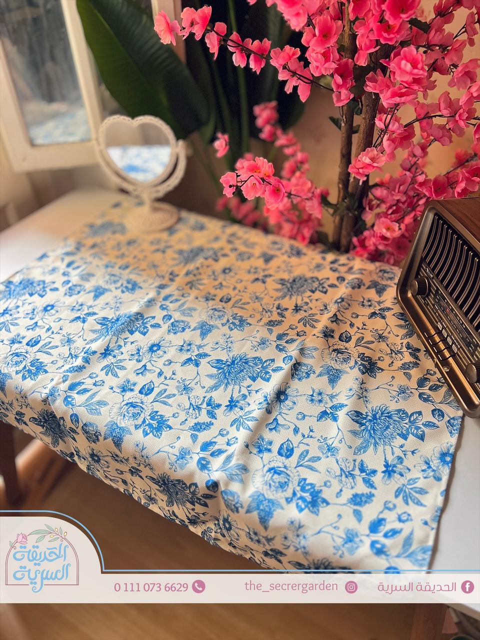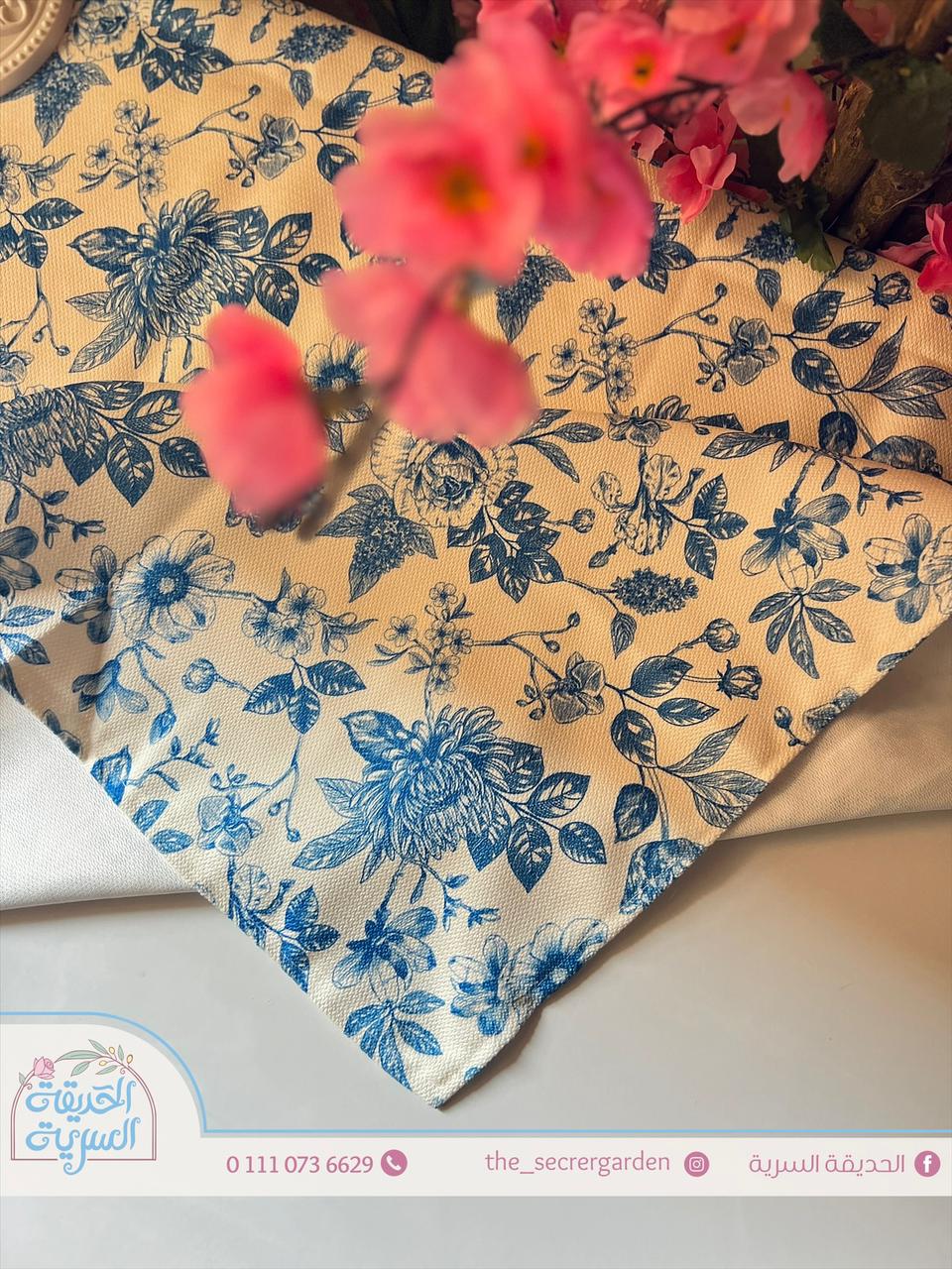 مفرش أنيق بزهور زرقاء