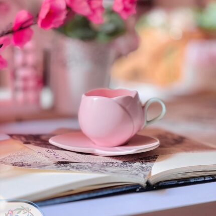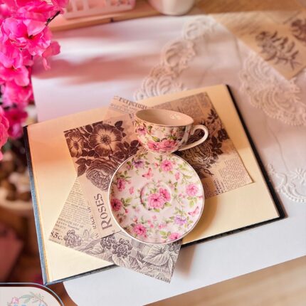 طقم فخم وأنيق براد و 2 فنجان قهوة أرنب وورد